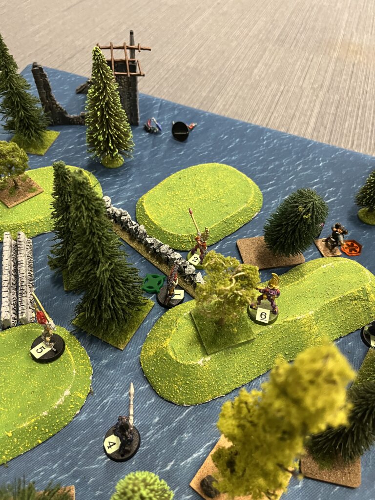 It wasn’t all going our way though. We could see Vanderfine moving through the trees near some buildings, but we couldn’t get to him or shoot him. Wolf had managed to wound a Grenadier but not kill him. Wolf’s shot had all but blown the guy’s leg off so he couldn’t move. What he could do though was lob frag grenades at us continually. Everybody in range was trying to kill him but nobody could. They either missed or whatever body armour Hopkirk had supplied these guys was a cut above normal.